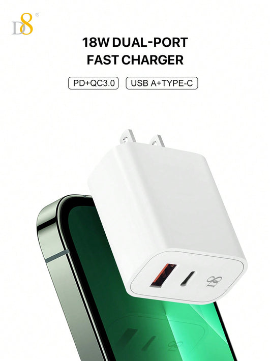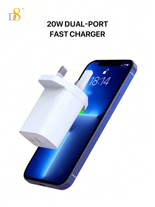 D8 20W USB C Dual Port PD Fast Charger - Type C Wall Adapter for iPhone 15, Galaxy, iPad Pro & More
