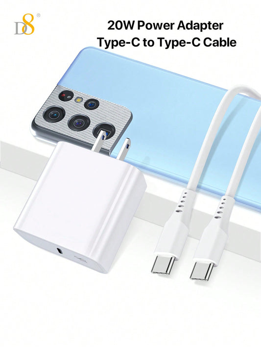 D8 20W USB C Fast Charger, PD Power Wall Charger, USB C to USB C Cable for iPhone 15, iPad