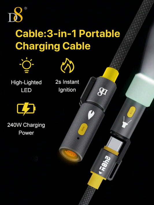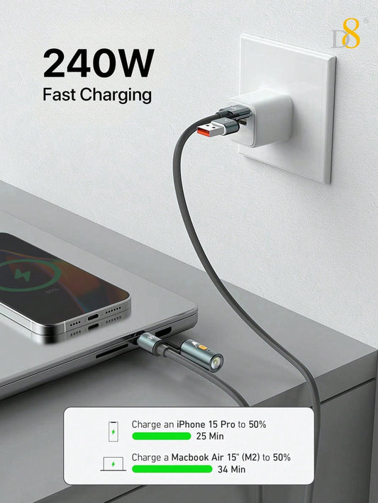 D8 240W 3-in-1 Charging Cable with LED Lamp, Fast USB-C for MacBook