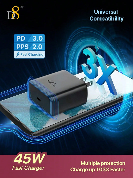 D8 45W USB-C Super Fast Charger, Wall Block for Galaxy/iPhone/Pixel/Tab