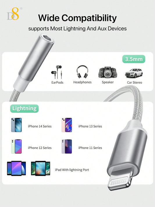 D8 iPhone AUX Cord, Lightning to 1/8" Stereo Cable, 3.3FT for iPhone Models