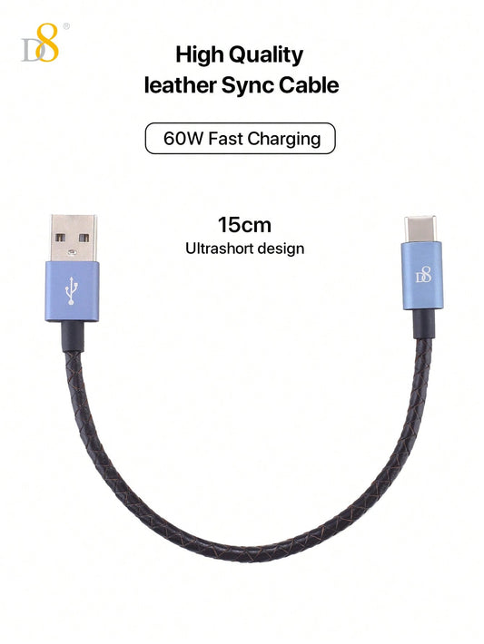 D8 Genuine Leather USB-C Cable, 60W/0.2m, USB-A to Type-C for iPhone/Galaxy