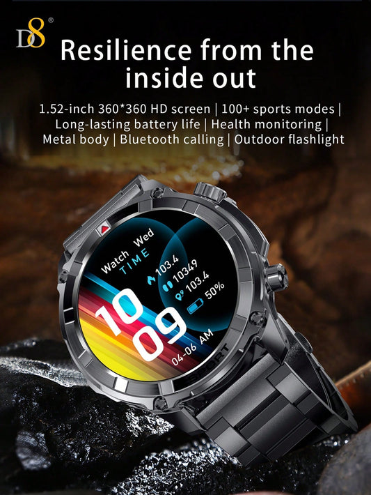 D8 Men's Smartwatch, 1.52" HD, Calls, LED Flashlight, IP68, 100+ Sports Modes