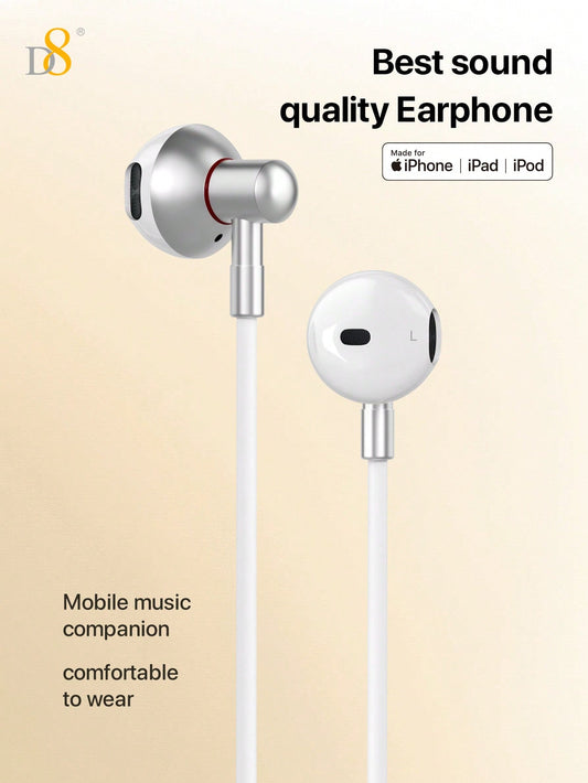 D8 Lightning Connector Headphones with Mic & Remote – MFi Certified Wired Earbuds