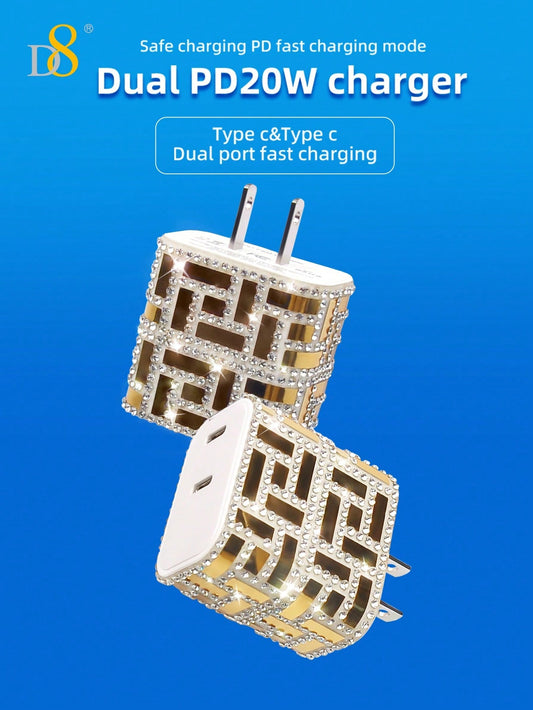 D8 Crystal Decoration Type C Charger, 20W PD USB Wall Charger Super Fast Charging Block /Crystal Decoration /USB-C Cord Phone Charger
