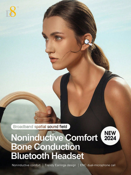 D8 Open-Ear Wireless Headphones, Bass Stereo, 15H Playtime, Waterproof Mic