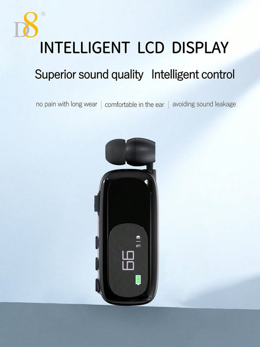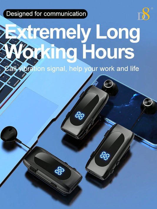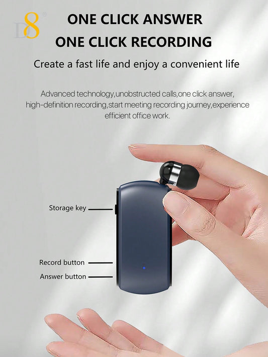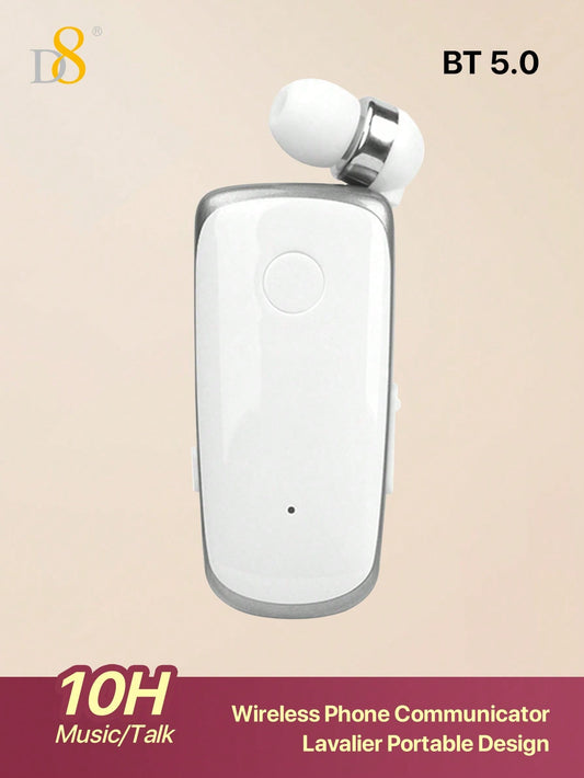 D8 Retractable Wireless Headset, V5.0 Noise-Canceling Clip-On Earbud, 10H Talk