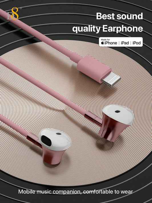 D8 Wired In-Ear Headphones with Lightning Connector – MFi Certified, Noise-Isolating, Mic & Volume Control