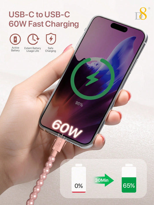 D8 USB-C to USB-C Cable, 3.3FT, 60W Fast Charge, Beaded Braided, for iPhone/iPad