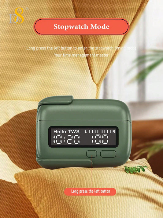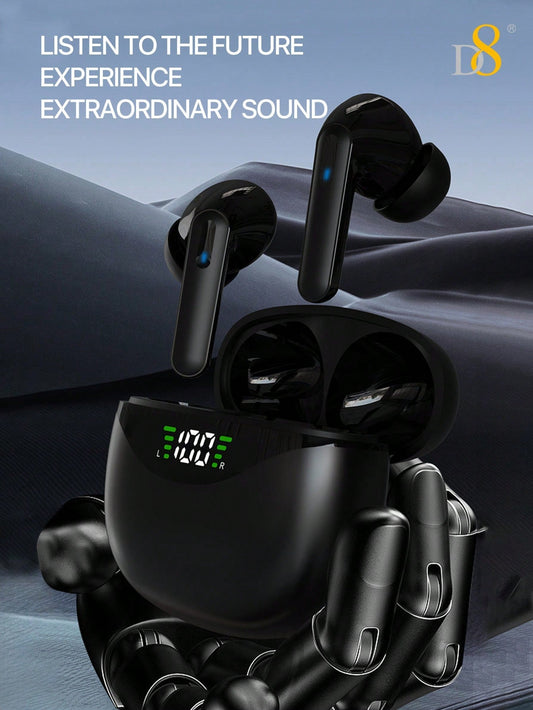 D8 Wireless Earbuds, Bass Stereo, LED Display, Mic, Button Control, Removable