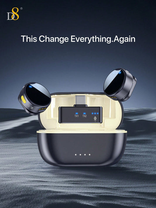 D8 Wireless Lavalier Mic, Auto Sync, Noise Reduction, 24H Battery, USB-C