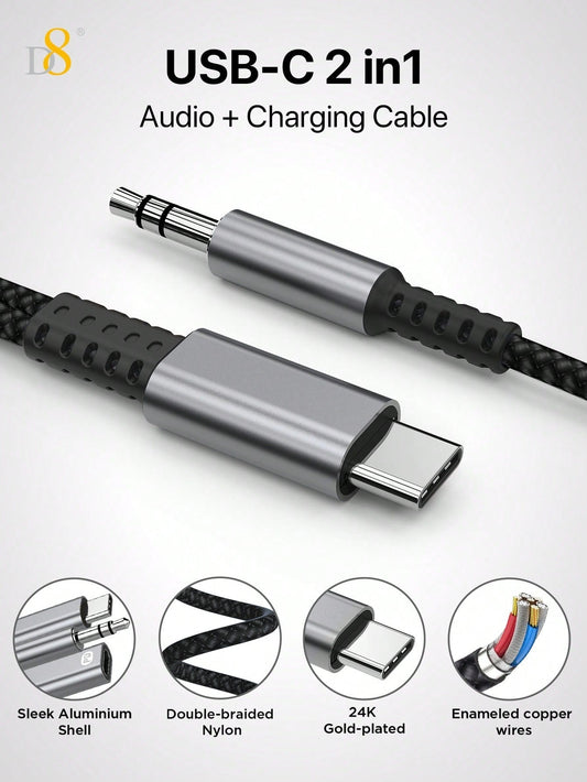 D8 USB-C to 3.5mm Aux Cable, 3.3FT, for iPhone/Galaxy/Pixel/iPad, Car Stereo