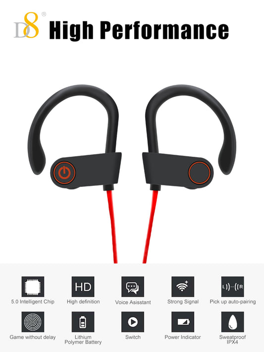 D8 Wireless Sport Earbuds, Noise-Canceling Mic, 72H Battery, HiFi Sound, USB-C
