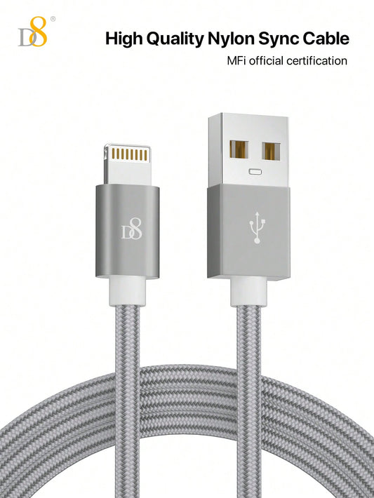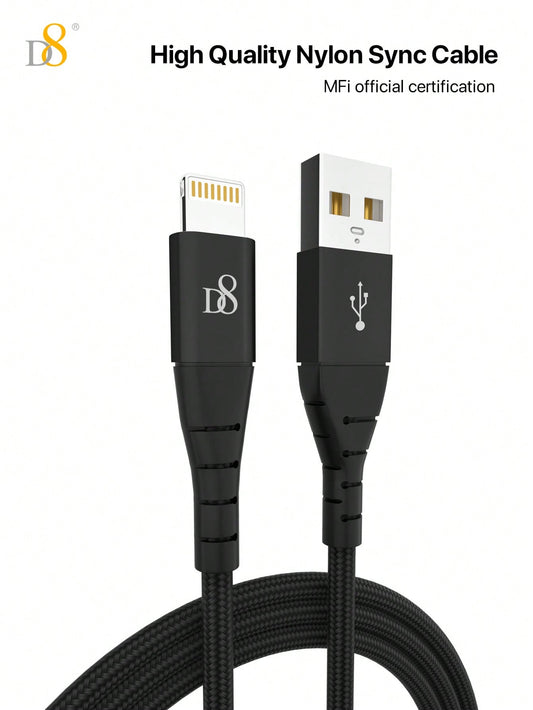 D8 3.3ft MFi Certified Nylon USB-A to Lightning Cable for iPhone & iPad