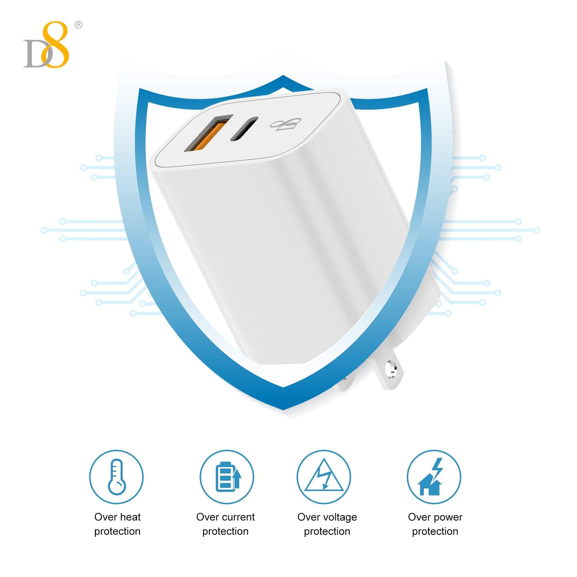 D8 20W Fast Charging Dual Port USB+TYPE-C Wall Charger