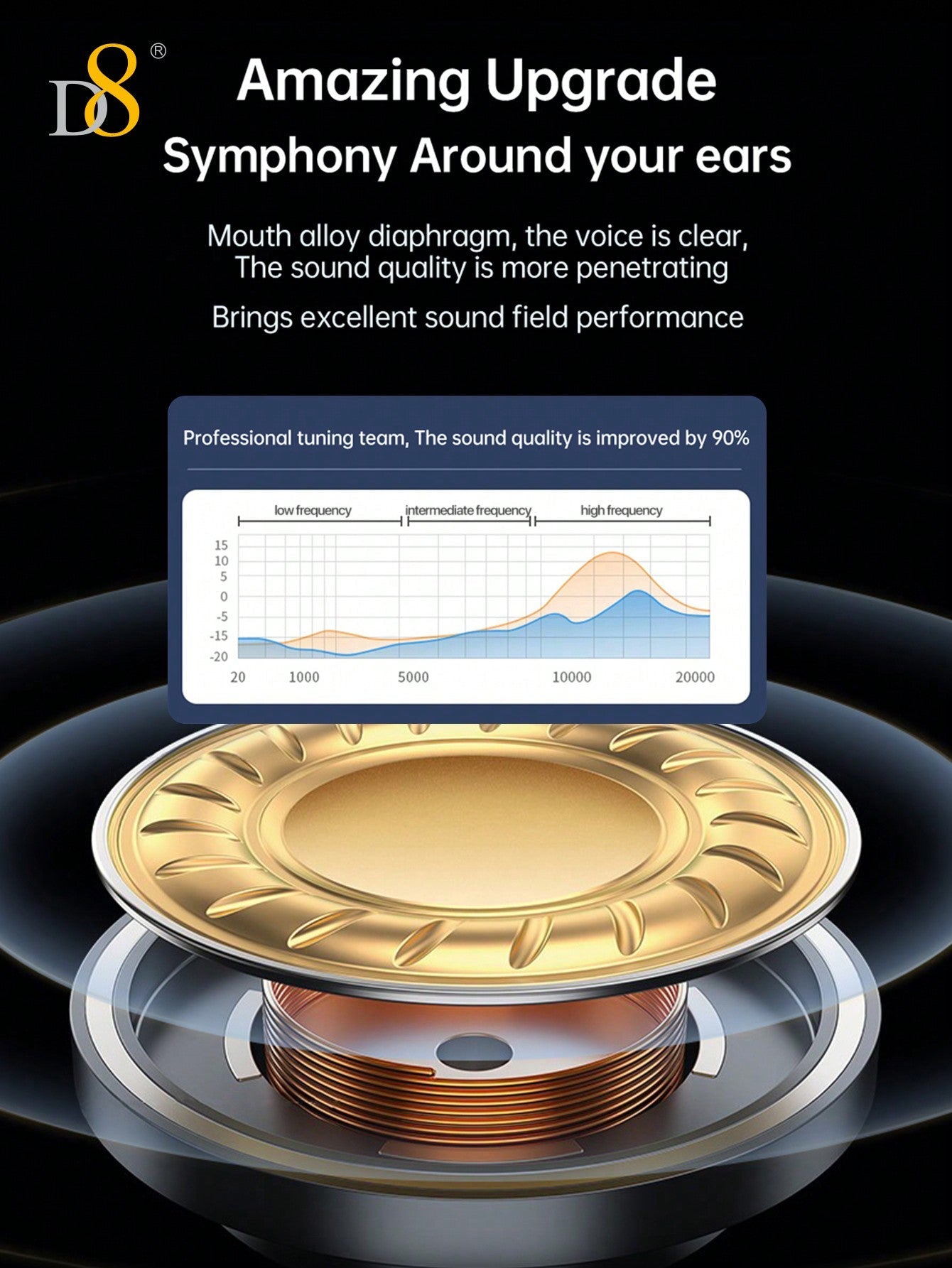 D8 Open-Ear Wireless Headphones, Bass Stereo, 15H Playtime, Waterproof Mic