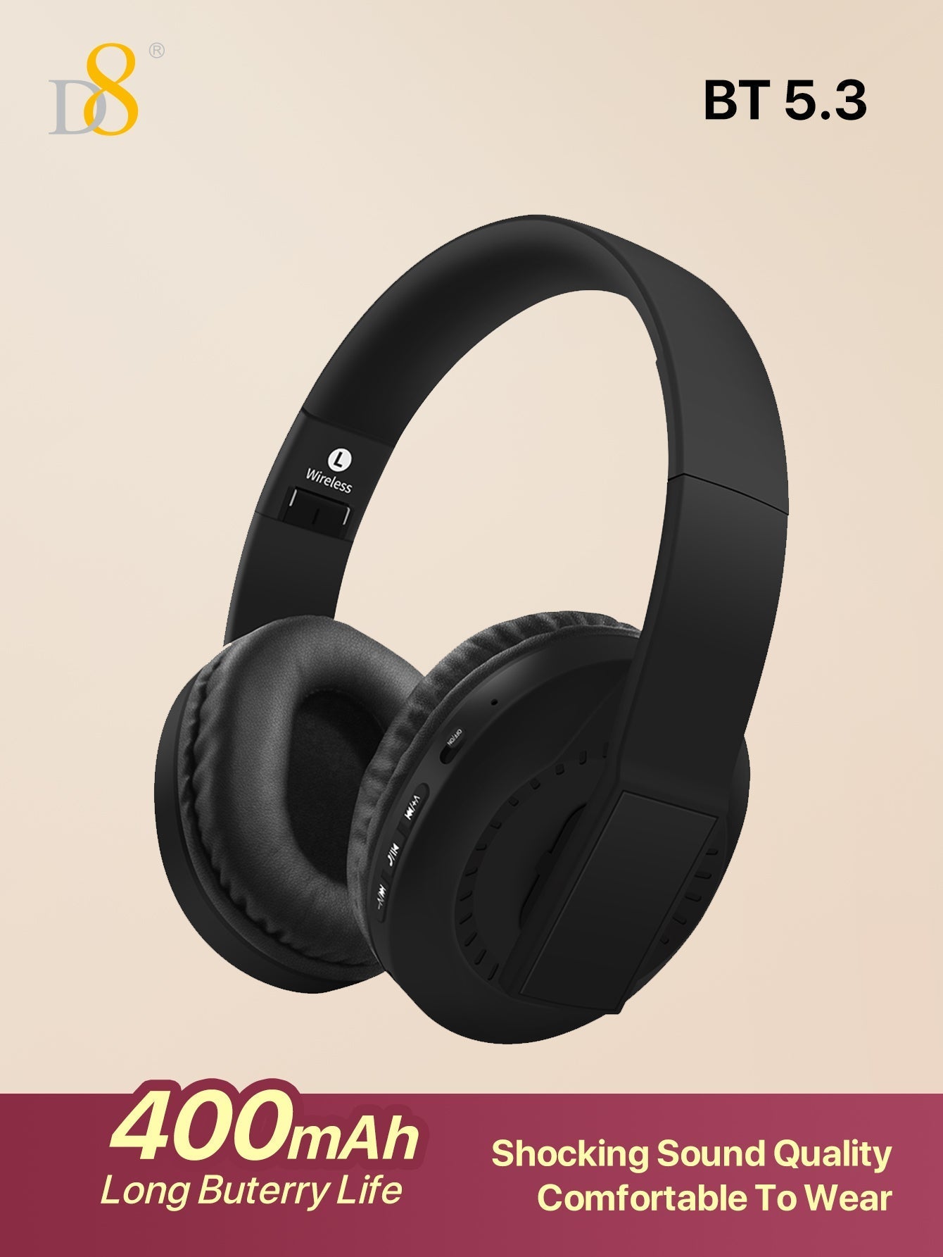 The D8 Over-Ear Headphones are a versatile and high-performance audio accessory designed for both wireless and wired use. Featuring a foldable design, these headphones are perfect for on-the-go listening. With an integrated microphone, micro SD card slot, and 10 hours of playtime, the D8 headphones offer seamless connectivity, exceptional sound quality, and a comfortable fit. Whether you're listening to music, taking calls, or enjoying movies, these headphones provide clear, deep bass, and immersive audio for every moment.