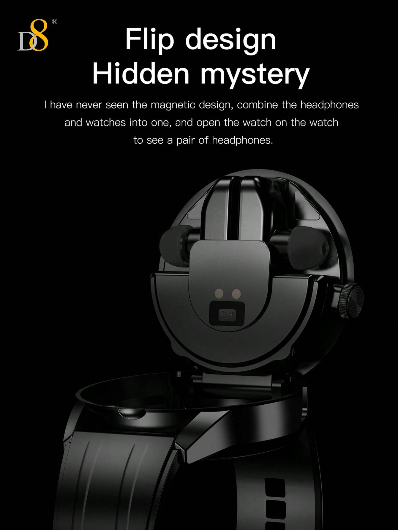 D8 2-in-1 Smartwatch with Earbuds, Fitness Tracker, 100+ Sports Modes, iOS/Android