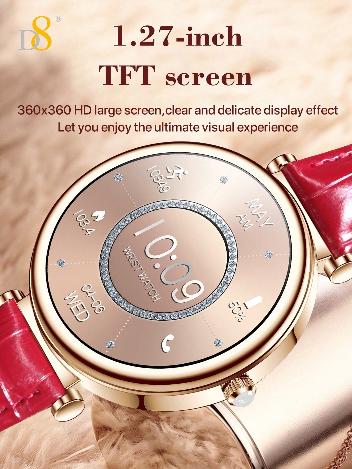 The D8 Smart Watch for Women is the perfect blend of functionality and style. Designed with a 1.27" TFT display, this smartwatch is an ideal companion for active women who want to stay connected, monitor their health, and track their fitness. With 100+ sport modes, IP67 waterproof capabilities, pedometer, and sleep monitoring features, it ensures you stay on top of your health while maintaining a fashionable look. Whether you're running, cycling, or simply managing daily tasks, this smartwatch has you covered. It also supports answering and making calls, making it a versatile tool for staying in touch.