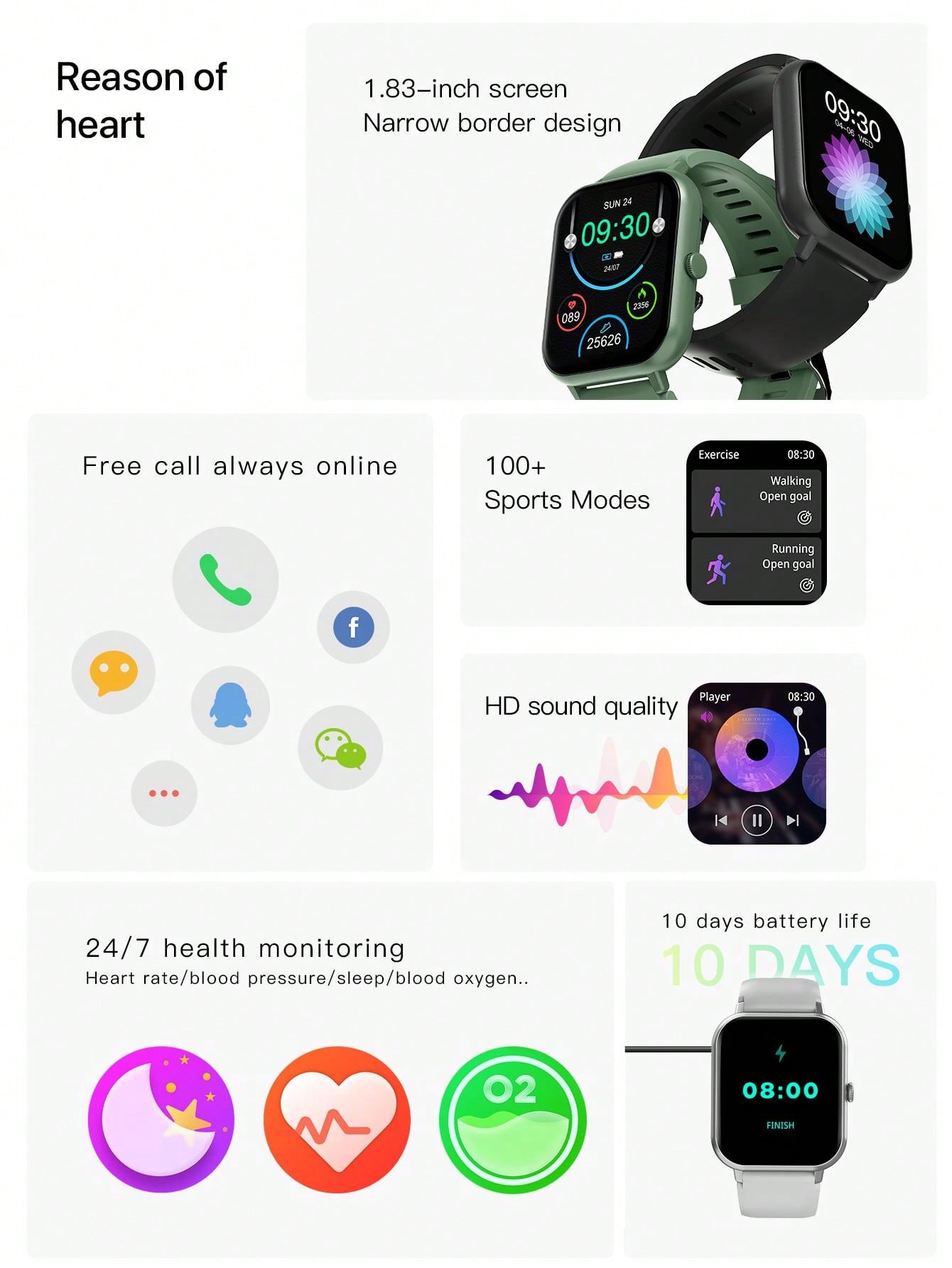 - Large Touchscreen Display: With its 1.83" touch screen, the D8 smartwatch offers an easy-to-use, user-friendly interface, making it simple to navigate through various functions and view data with just a few taps.