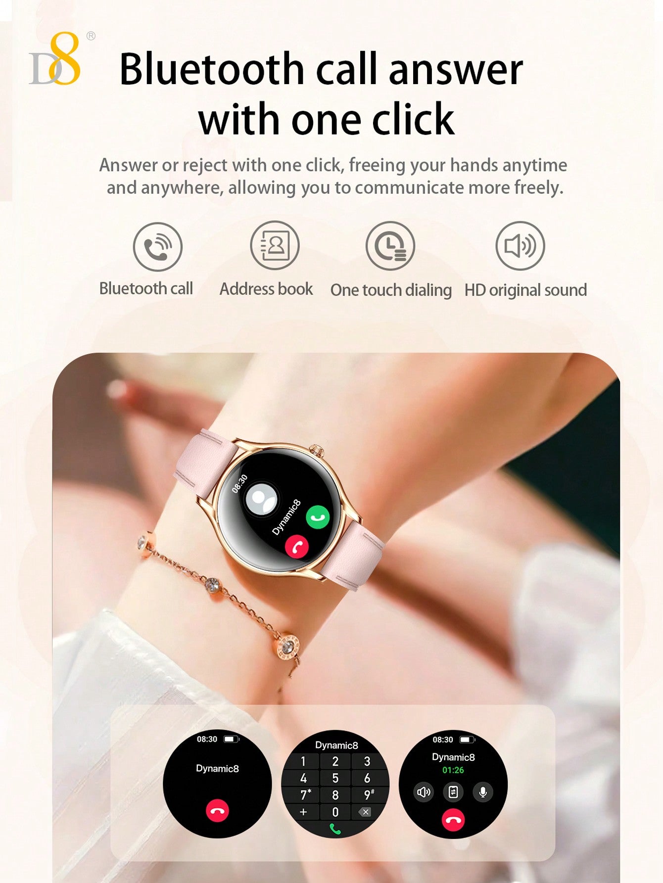 The D8 Smartwatch for Women is the ideal companion for those seeking a combination of style, convenience, and performance. With a 1.43" AMOLED screen, 100+ sports modes, heart rate monitoring, and the ability to answer/make calls, this smartwatch helps you stay connected while tracking your fitness progress. It’s waterproof, compatible with both iPhone and Android, and comes with a long-lasting battery to keep up with your lifestyle. Whether you're working out, at work, or enjoying your leisure time, the D8 Smartwatch is designed to meet all your needs.